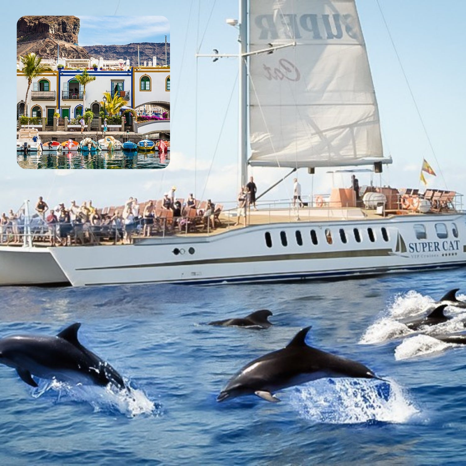 Experience the magic of dolphin watching in Gran Canaria! Join our 5-hour tours with dolphin sightings and a visit to the vibrant Mogán Market, perfect for families, seniors, and those who love exploring local culture, traditional markets, and charming villages.
