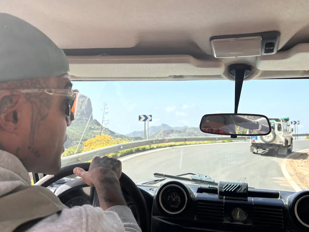 On the return, we took a short detour near Las Palmas to see parts of the city from the outside. When a traffic jam appeared on the way back to Maspalomas, Raymond adapted the route on the spot, avoiding the congestion entirely. This unexpected change allowed us to see more than planned from the vehicle, including the old sugar factory and the Cuatro Puertas mountains.