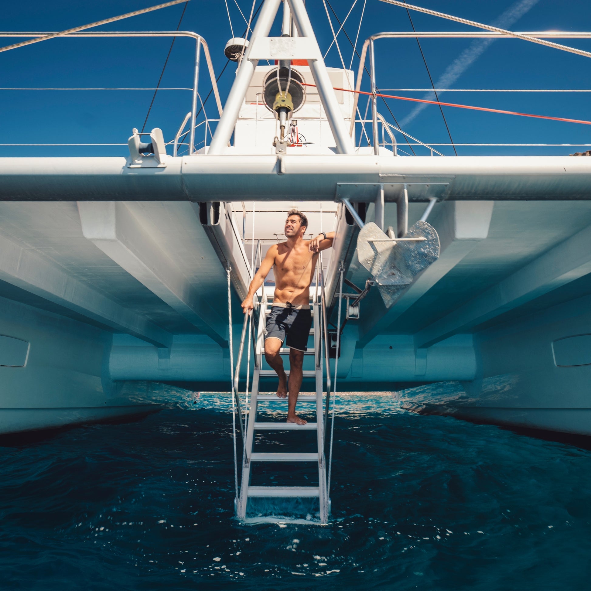 El catamarán está equipado con una escalera de acceso directo al mar, que facilita una entrada segura al agua para nadar o practicar esnórquel. Además, la embarcación cuenta con instalaciones y servicios accesibles especialmente diseñados para recibir a personas con movilidad reducida, garantizando que todos puedan disfrutar plenamente de esta experiencia única.