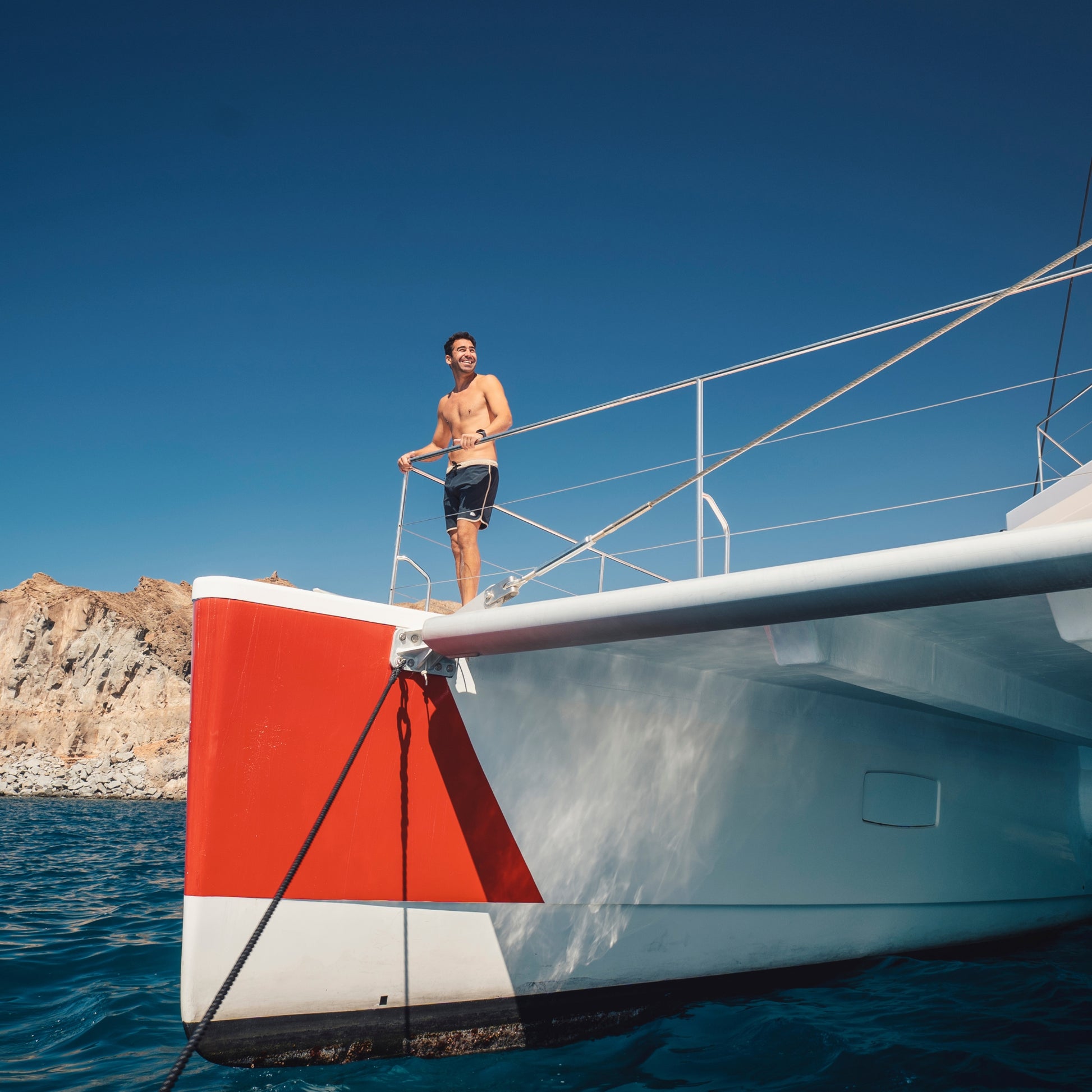 Una vez anclados, elige tu plan: hacer esnórquel, nadar en tranquilas calas turquesas, relajarte en la cubierta o disfrutar del sol en nuestro solárium flotante. Un delicioso almuerzo y bebidas están incluidos, servidos por nuestra amable y profesional tripulación, que estará a tu servicio durante todo el recorrido para hacer de tu día en el mar una experiencia realmente excepcional.